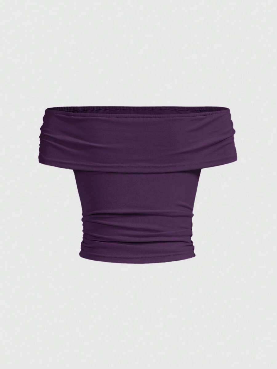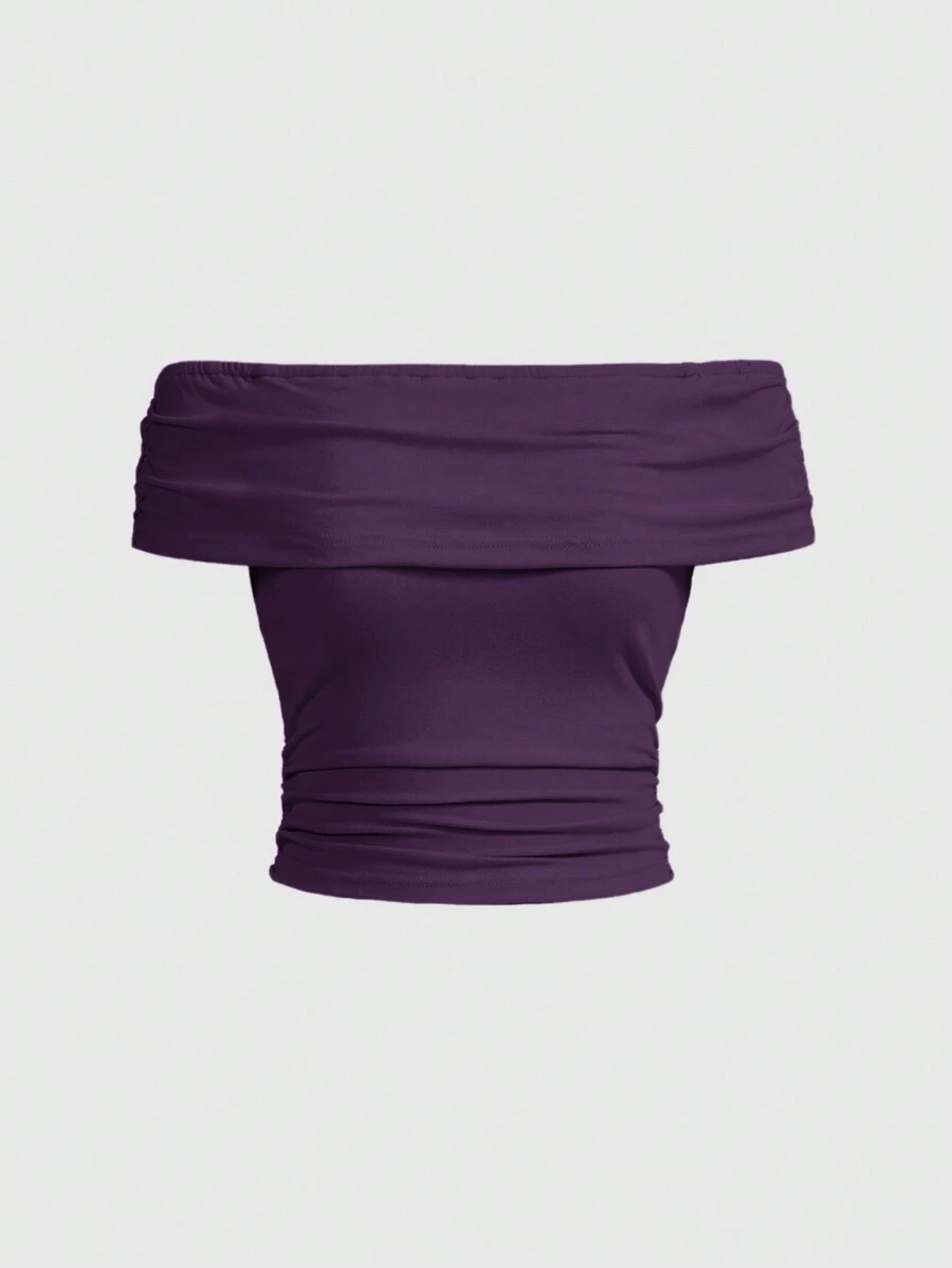 Women's Versatile Soft Solid Color Fitted Cropped Off Shoulder Top, Fashionable For Summer