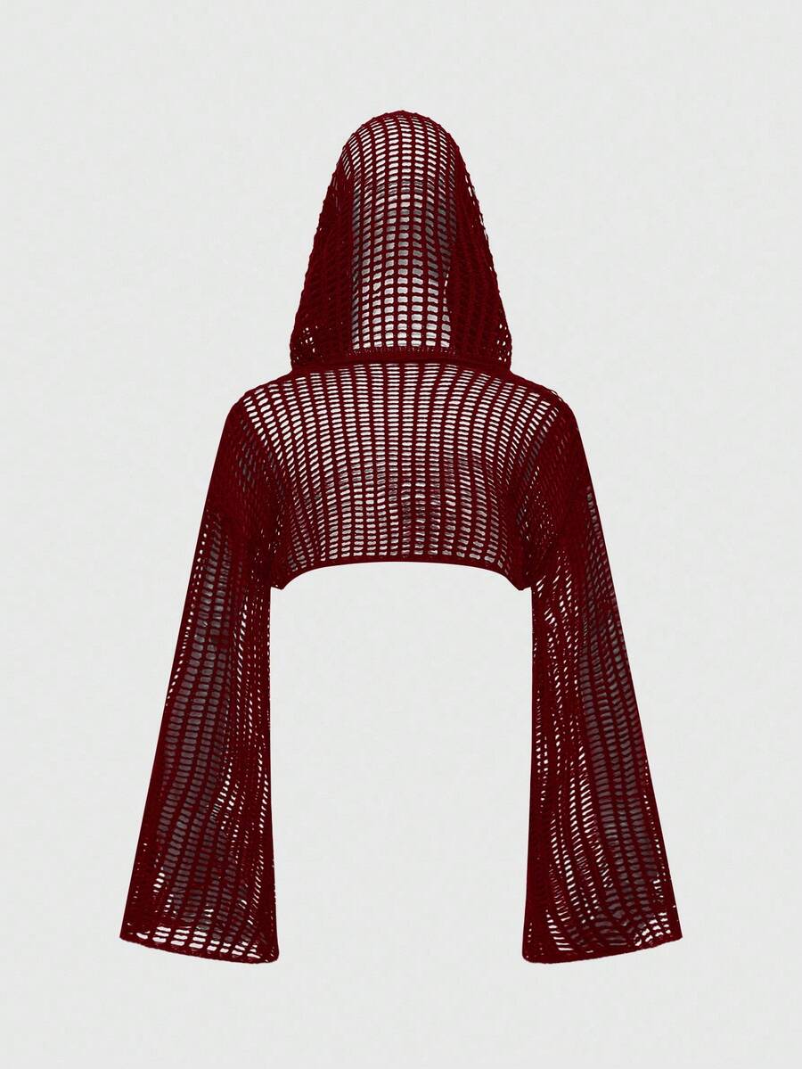 Grunge Punk Y2K Apocalyptic Solid Color Hollow Out Cropped Hoodie