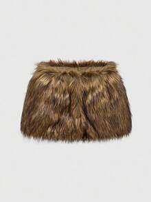 Grunge Punk Y2K Faux Fur Plus Size Women Mini Shorts, Autumn/Winter