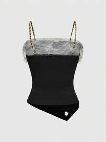 J-Fashion Y2K Gyaru Himekaji Furry Camouflage Print Patchwork Fuzzy Tie-Up Chain Embellished Women Top, Autumn/Winter