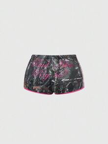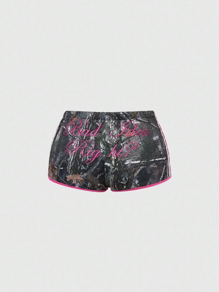 Y2K Low Waist Sexy Camouflage Print Contrast Color Embroidered English Text Dolphin Shorts For Women