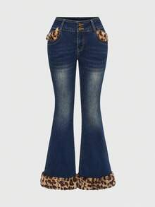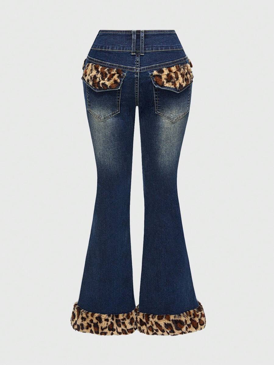 J-Fashion Y2K Low Waist Vintage Faux Fur Leopard Print Patchwork Denim Jeans