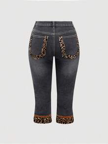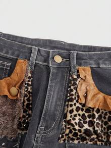 J-Fashion Y2K Low-Waist Vintage Leopard Faux Fur Patchwork Denim Capri Pants