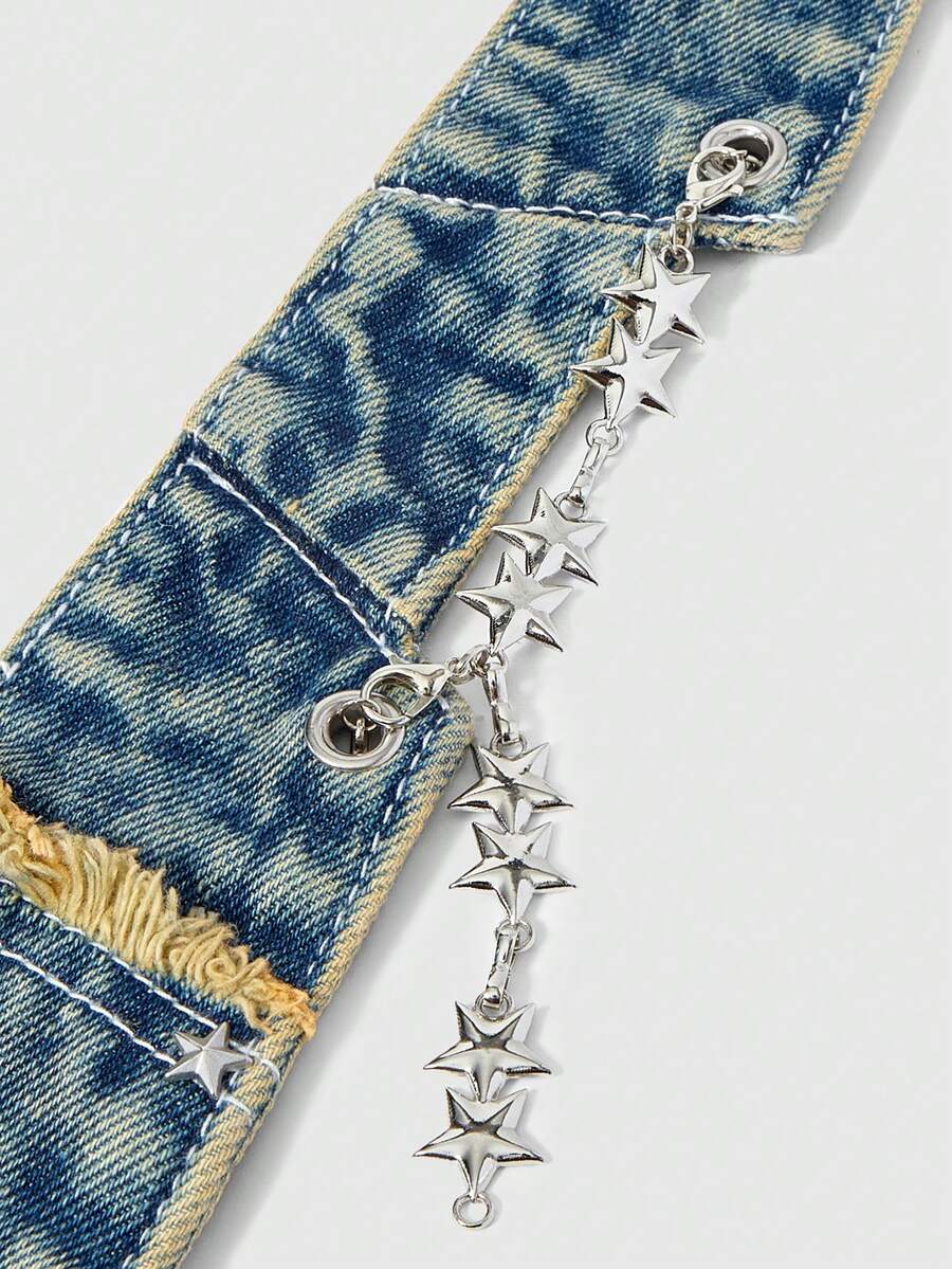 Grunge Punk Y2K Punk Metal Ring Accessories, Multiple Eye & Pocket Design, Distressed Edge Necktie For Women, Personalized Cool Unique Decorative Ornaments