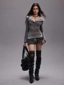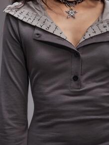 EDITION Y2K Romantic Punk Letter Print 2 In 1 Hooded Fitted Women T-Shirt