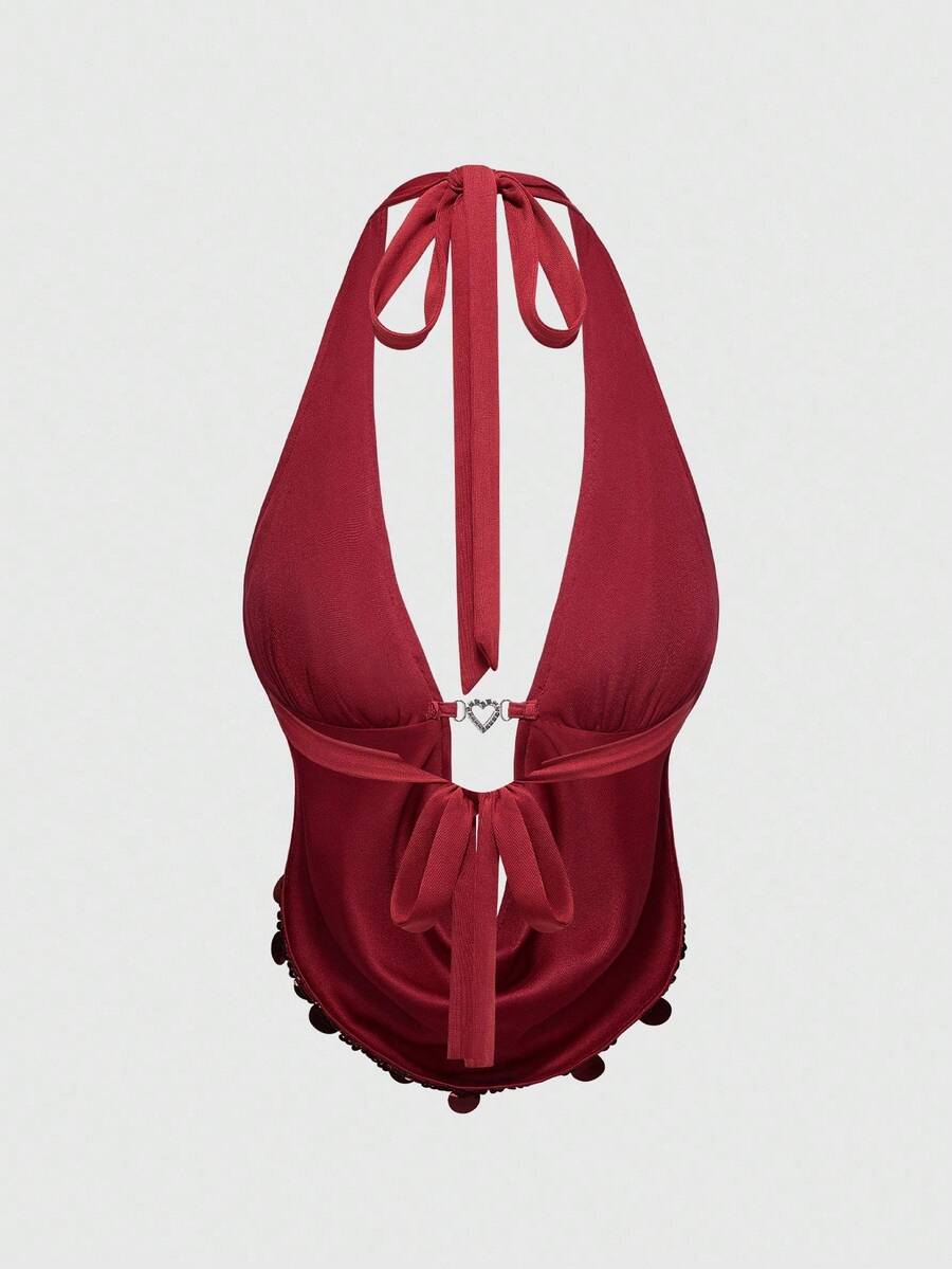 ROMWE Avant Y2K Sexy Draped Neck Beaded Backless Camisole For Women, Retro Vacation Island Style
