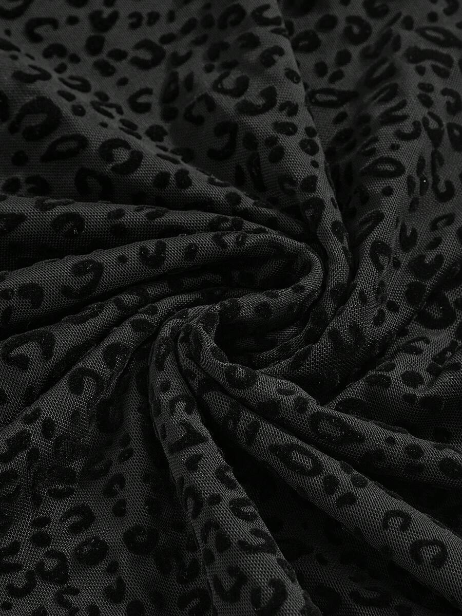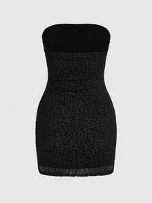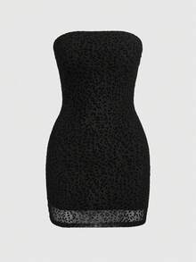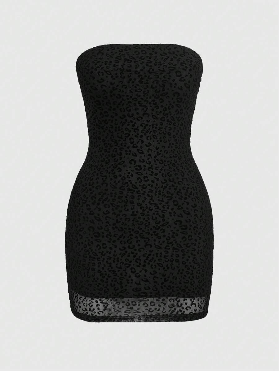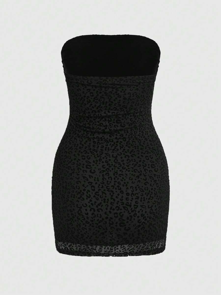 Y2K Sexy Flocked Dark Mysterious Bandeau Leopard Print Bodycon Mini Dress For Women, Suitable For Valentine's Day Party