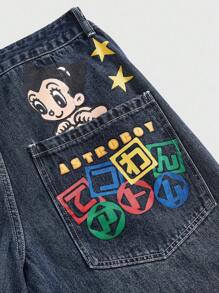 Astro Boy X ROMWE Y2K Streetwear Vintage Cartoon Figure Graphic Distressed Baggy Loose Fit Jeans