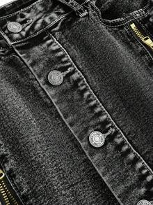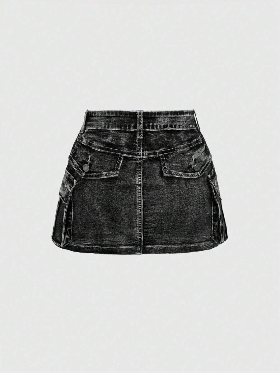 Kawaii Y2K Vintage Washed Zipper Closure Low Waist Mini Denim Skirt