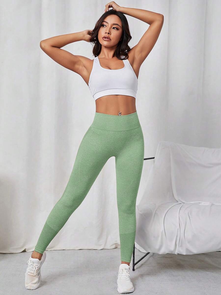 Yoga Leggings Seamless High Stretch Bubble Butt Push Up Training Tights With Wide Waistband