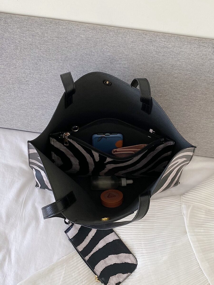 Zebra Striped Tote Bag & Purse