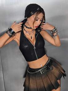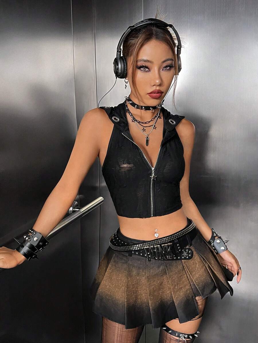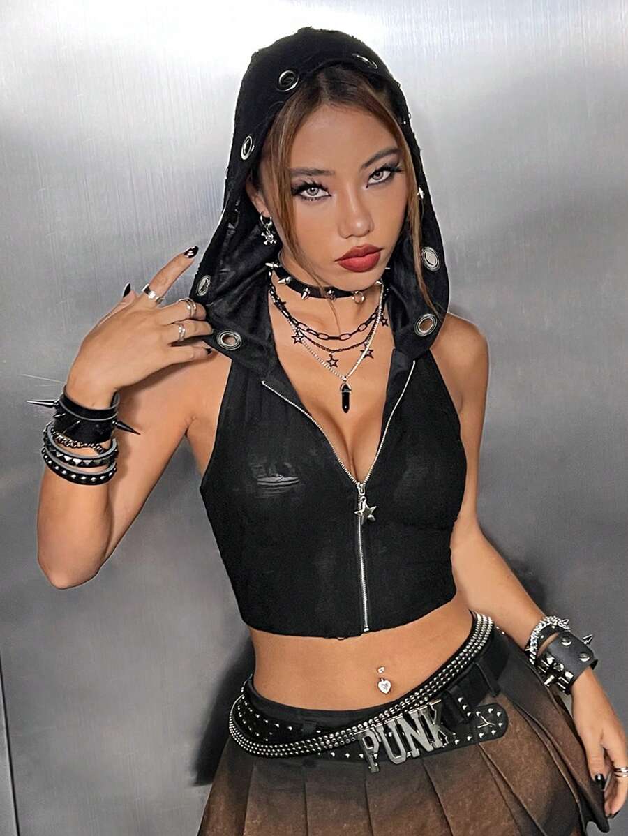 Zip Up Hooded Crop Halter Top