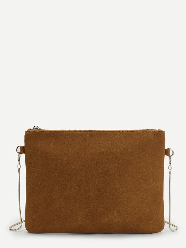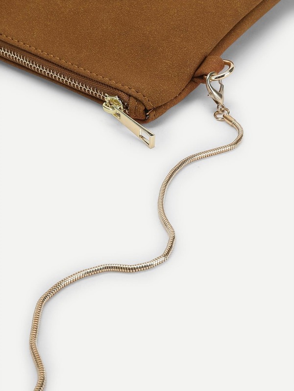 Zipper Detail Clutch Bag With Chain