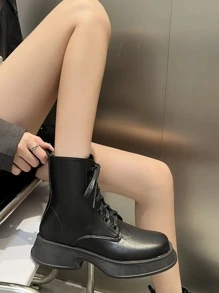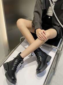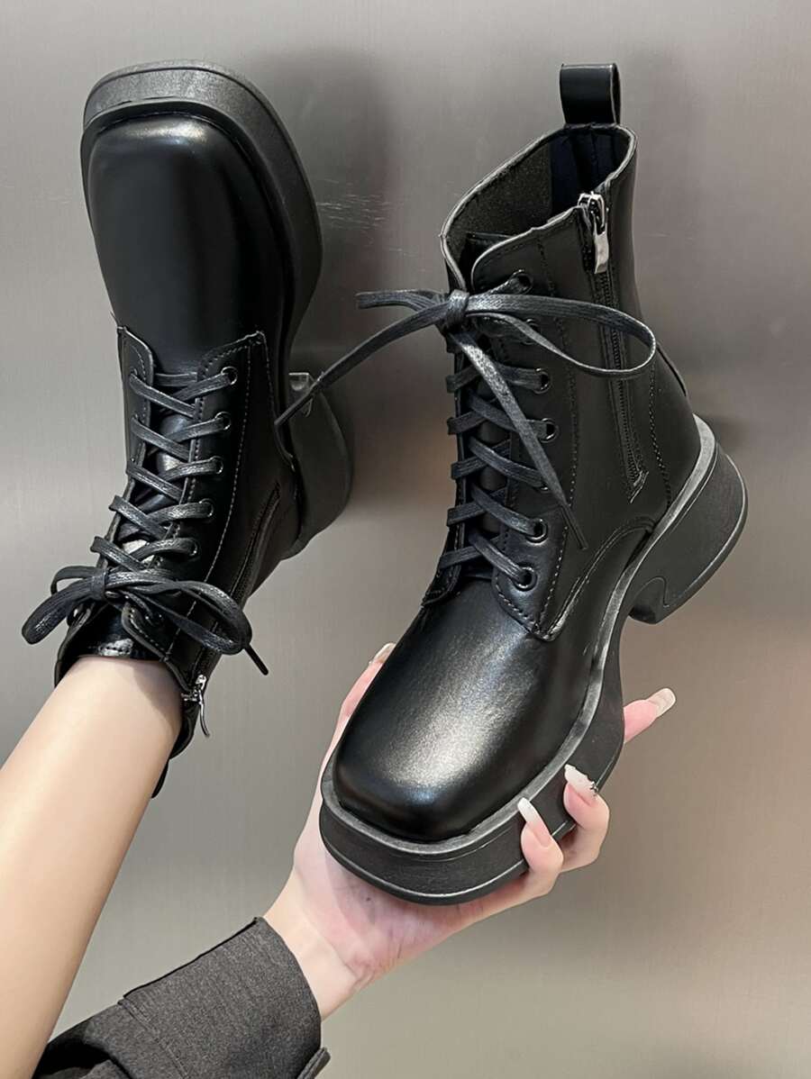 Zipper Side Lace-up Front Square Toe Combat Boots