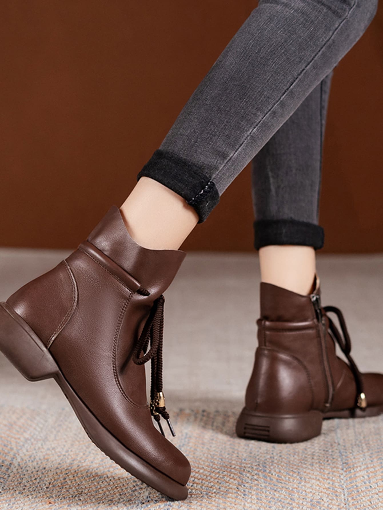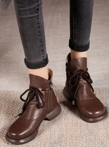 Zipper Side Tie Front Boots