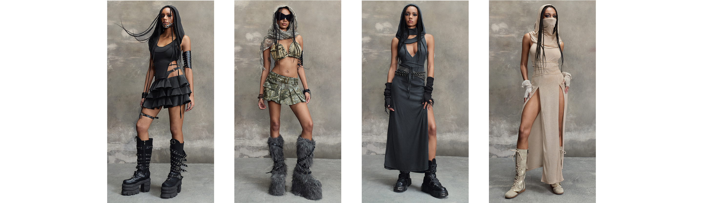 Create a new world from the ruins of the old in mean head-to-toe monochrome, or take on the terrain in camo that's too bold to blend in. Whatever the future holds, it better include lots of dancing.