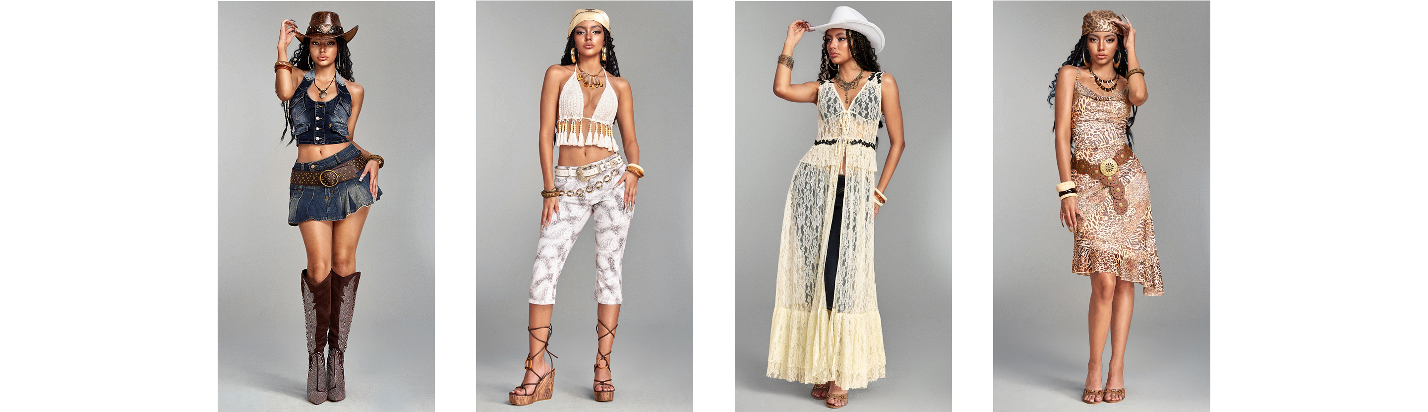 Strike a chord that pays homage to the classics while lassoing up a modern maximalist edge in denim-on-denim drip, or ride into the high noon desert vibes with southwestern minimalism.