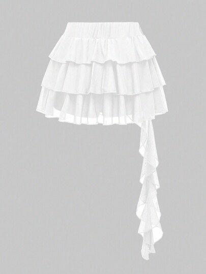 Fairycore Mermaid Solid Ruffle Trim Asymmetrical Hem Skirt