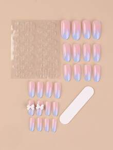 pinpai 24pcs Ombre Fake Nail & 1sheet Tape & 1pc Nail File