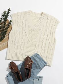 Plus Cable Knit Shoulder Pad Sweater Vest