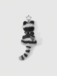 Kawaii 1pc Black & Gray Y2K Baddie Retro Punk Style Striped Metal Rivet Pentagram Plush Cat Multifunction Accessory Keychain, Suitable For Bags, Pants, College, Casual Outings, Dates