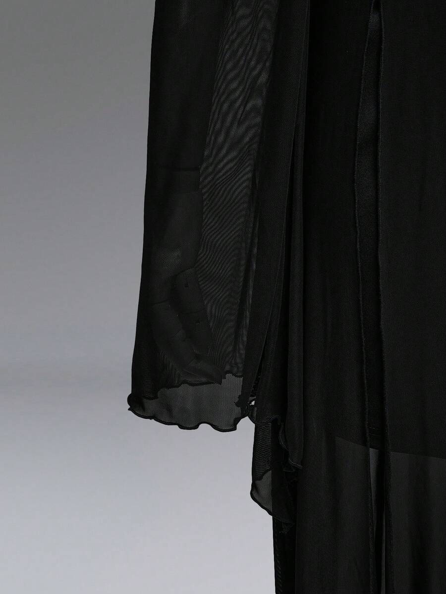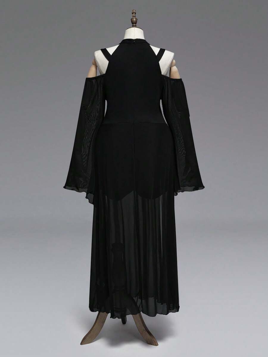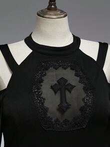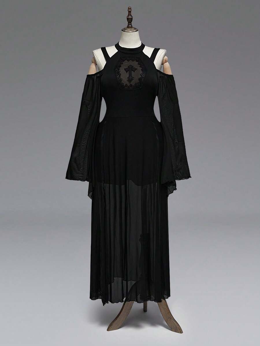 Plus Size Gothic Cross Hollow Mesh Patchwork Off-Shoulder Dress