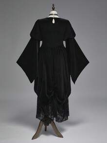 Gothic Luxurious Palace Dark Paisley Pattern Velvet Black Dress, Plus Size, Suitable For Banquet, Party, Formal Occasion, Vintage Elegant Plus Size Dress