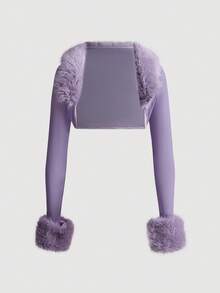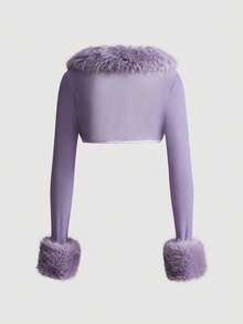 Grunge Punk Y2K Harajuku Style Mesh Patchwork Black Furry Collar Cropped Cardigan For Women, Can Be Paired With Camisole Or Dress