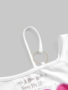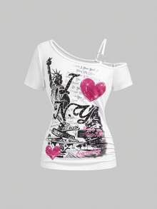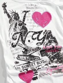 ROMWE Avant Women's Y2K Retro Streetwear Sexy Slogan Metallic Decor Rhinestone Print T-Shirt