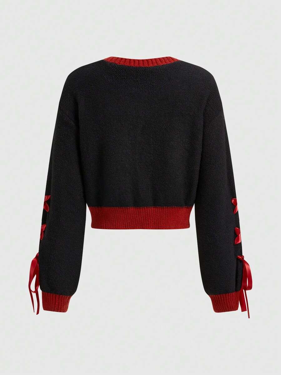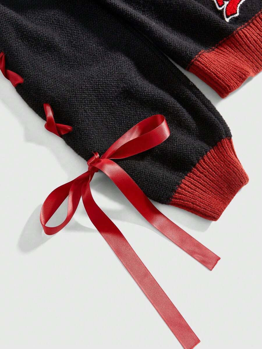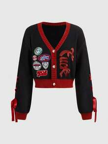 ROMWE Avant Funny Slogan Embroidered Contrast Color Cardigan Sweater