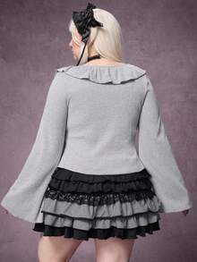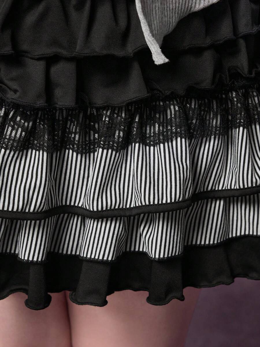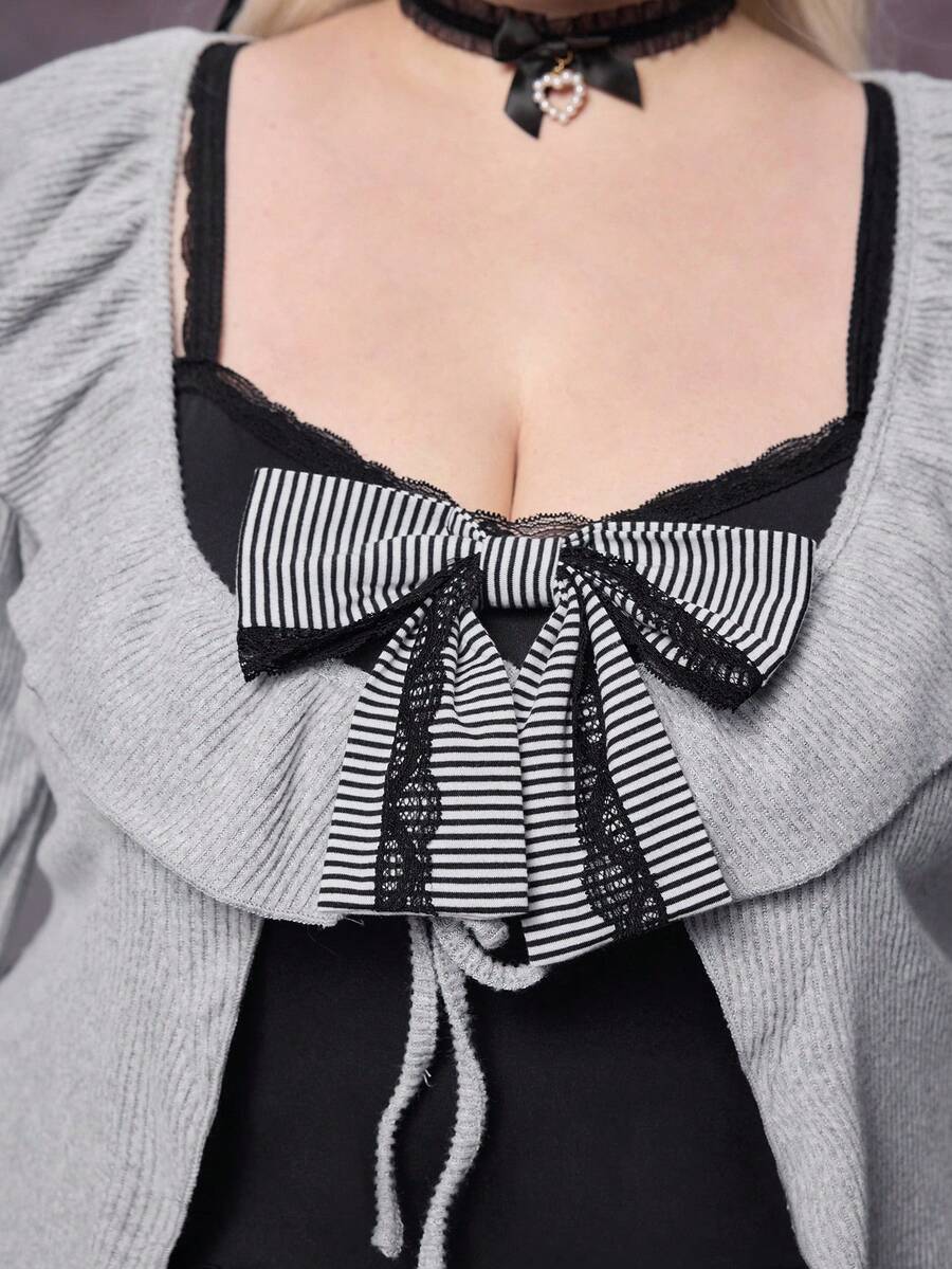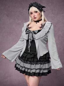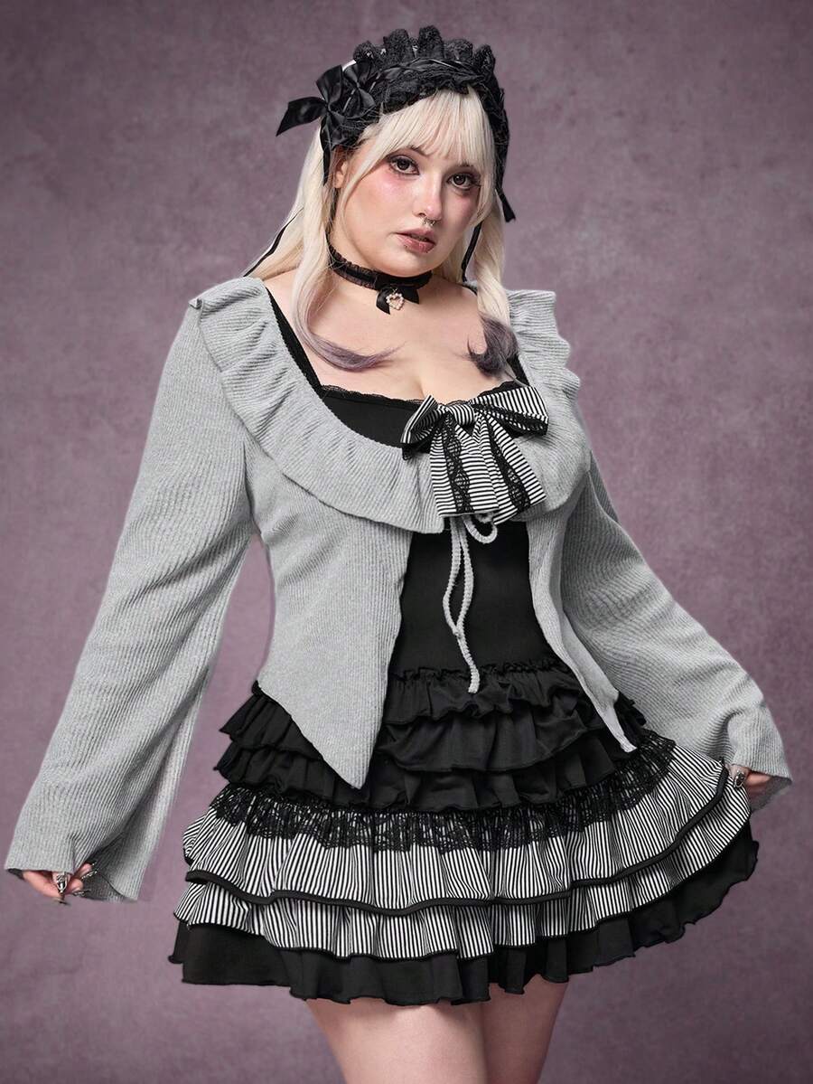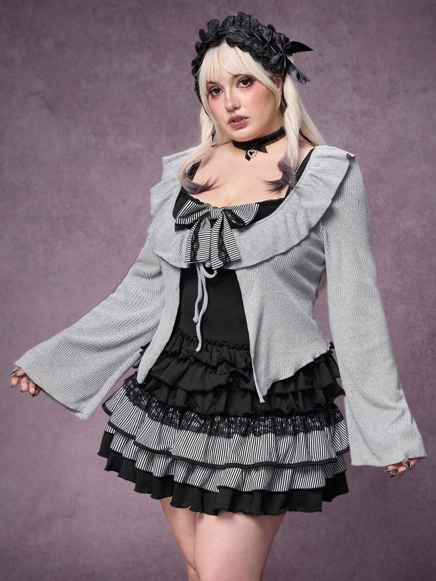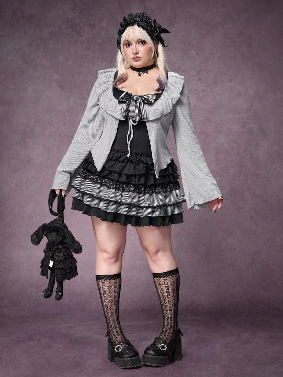 Plus Size Gothic Y2K Harajuku Style Bowknot Patchwork Grey & Black Dress