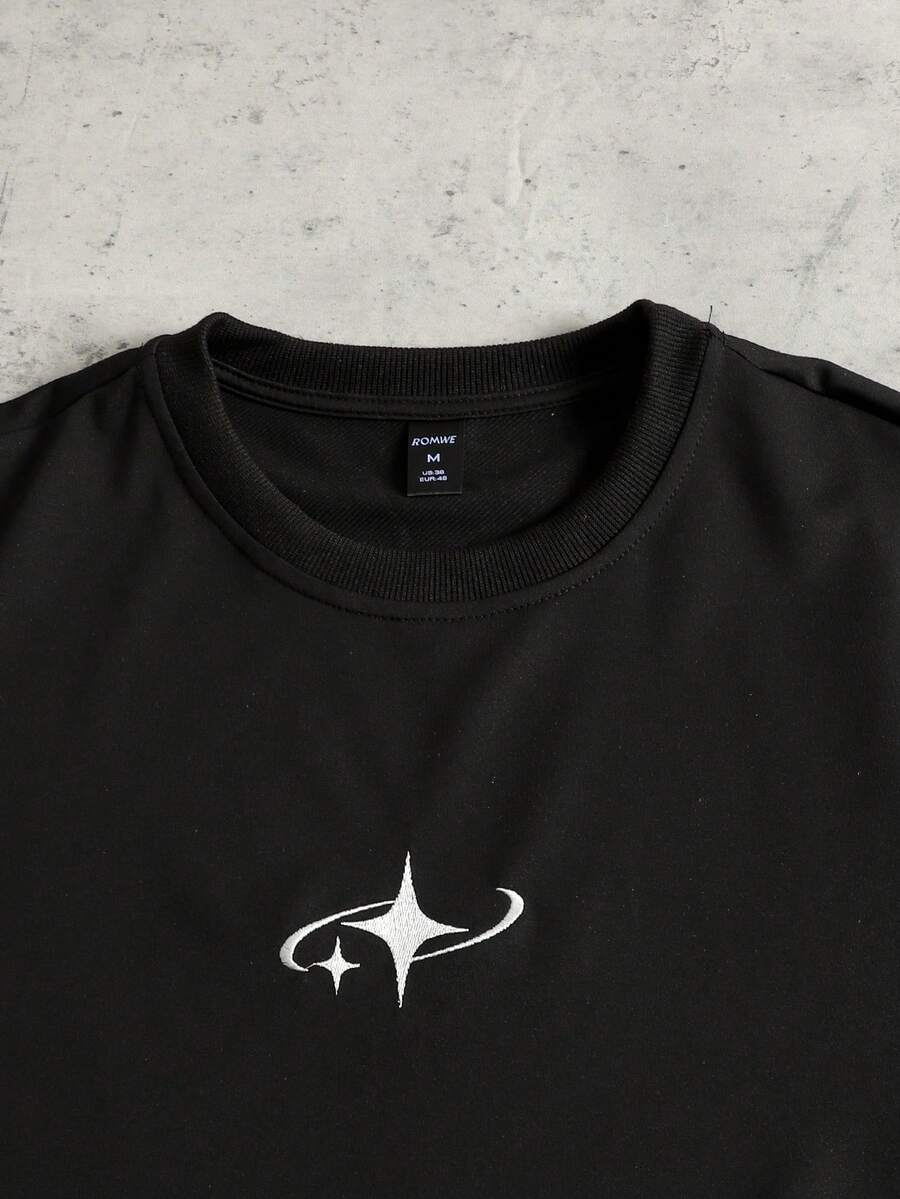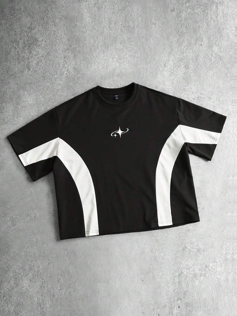 Men's Casual Contrast Color Star Embroidery Round Neck Short Sleeve T-Shirt, Summer