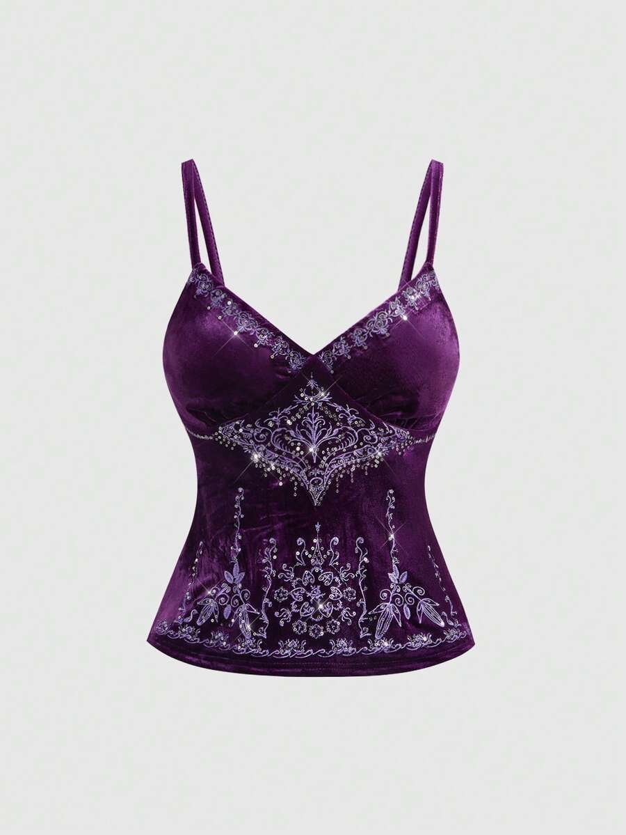 Goth Women's Vintage Sequin Embroidered Velvet Camisole
