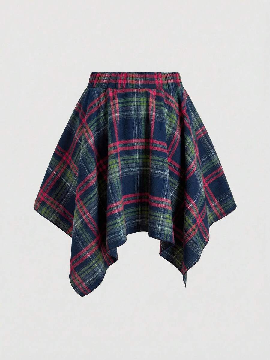 Grunge Punk Women's Grunge Vintage Plaid Print Tie Front Asymmetric Hem Skirt