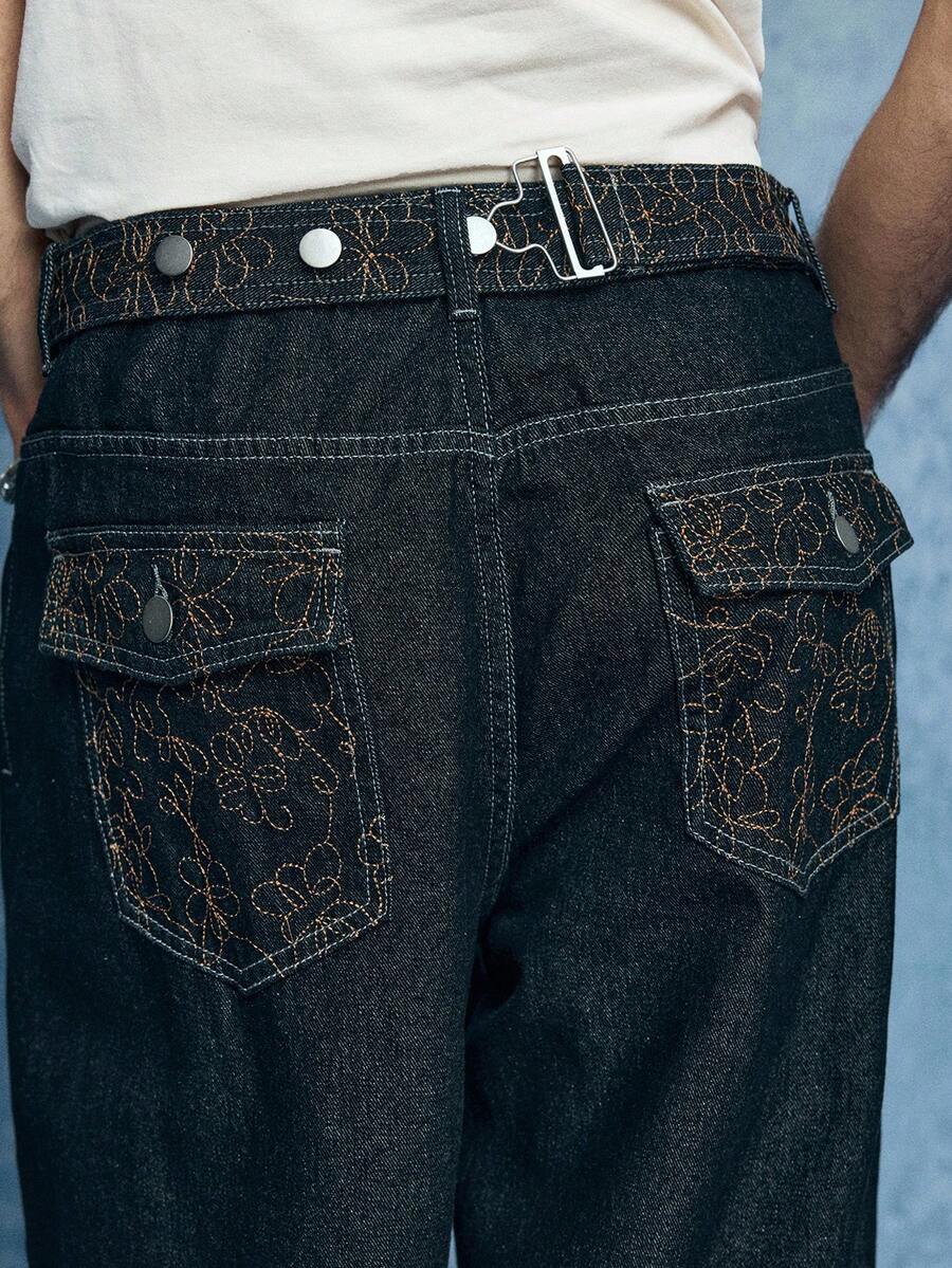 Street Life Men's Casual Vintage Embroidered Detail Loose Fit Jeans, Autumn