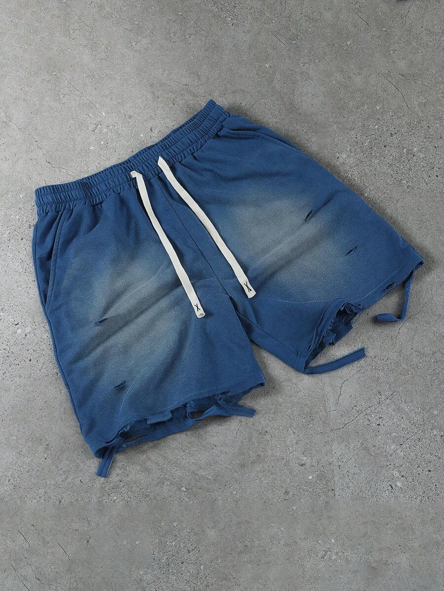 Casual Men's Vintage Distressed Splatter Print Horse Graphic Sports Shorts, Suitable For Everyday Wear In Spring/Summer