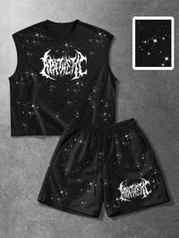 Street Life Men's Gothic Letter Print Shiny Round Neck Tank Top And Shorts Casual Set